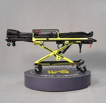 Esta camilla, fabricada con aleación de aluminio de aviación con un cojín de camilla de tela de PVC que contiene esponja de 10 cm, presenta un marco de vanguardia: elegante, razonable, resistente y de alta carga. Tiene tren de aterrizaje eléctrico, elevación/descenso en 10 segundos, con una estructura en X para facilitar la carga/descarga de ambulancias y ganchos en U de seguridad. El ángulo de la cabeza se ajusta a 85°, la altura es ajustable eléctricamente. Tiene barandillas reversibles de plástico polimérico, una superficie de camilla retráctil (0-400 mm) para espacios estrechos, cuatro ruedas giratorias flexibles y fijaciones de bloqueo para ambulancias. Marco pintado de amarillo con colchón negro. Se utiliza en ambulancias, hospitales, centros de emergencia. Incluye colchón de PVC sin costuras a prueba de agua, estilo chaleco y 3 arneses. Compatible con fijaciones L04/L06 como caja de transferencia profesional.